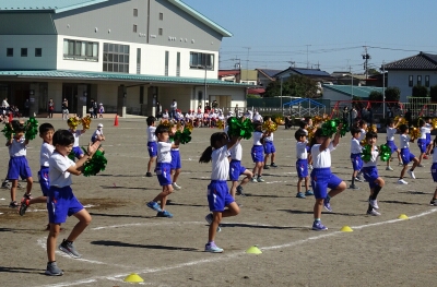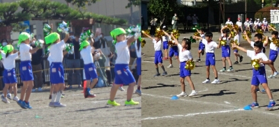 2年生の団体種目も『ちぇっこり玉入れ』です。昨年に続いて2回目なので、上手に投げたり踊ったりすることができていました。成長を感じられました。