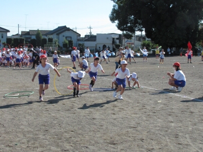 低学年の部は、2年生の障害走から始まりました。フラフープをくぐり、ハードルを跳び越え、一生懸命走っていました。くじ運は、どうだったでしょう?