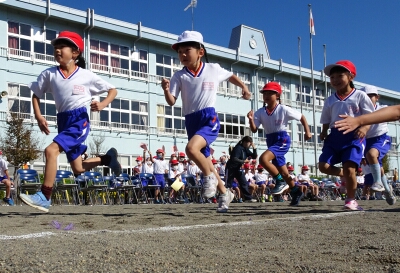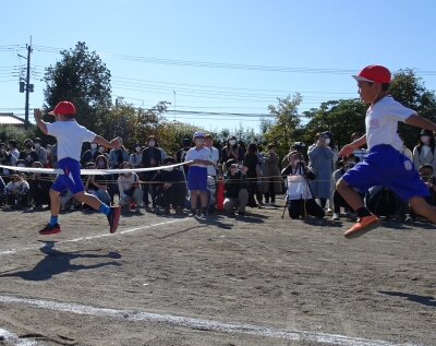 1年生の最初の種目は、徒競走でした。みんな最後まであきらめないで走りぬいていました。