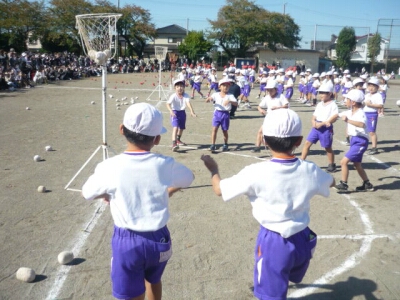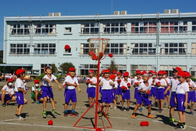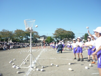 1年生の団体種目は、『ちぇっこり玉入れ』です。一生懸命投げ、踊る姿がかわいらしかったですね。