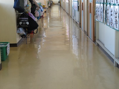 まん延防止等重点措置の延長で、なかよし班清掃がないのに、廊下がとてもきれいになっています。