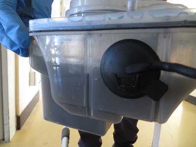 こちらのタンクには、次亜塩素酸が入っていて、きれいにしながら除菌しています。