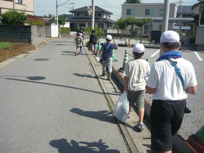 畑には、歩いていきます。今年は、3年生以上の児童がジャガイモ掘りをしました。