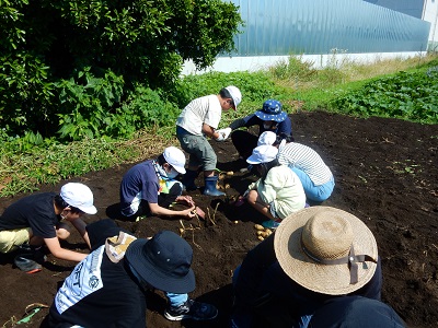環境ボランティアの方が、かがやき学級の児童をジャガイモ掘りに招待してくださいました。