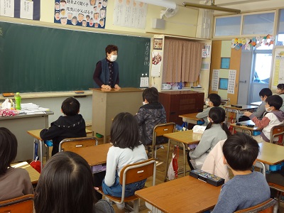 4名の語り部の方が各クラスを回り、上三川町に伝わる話を話してくださいました。