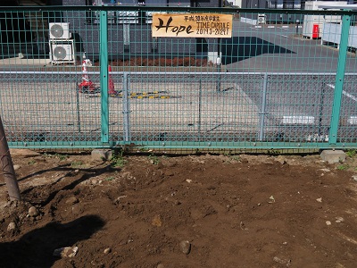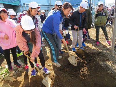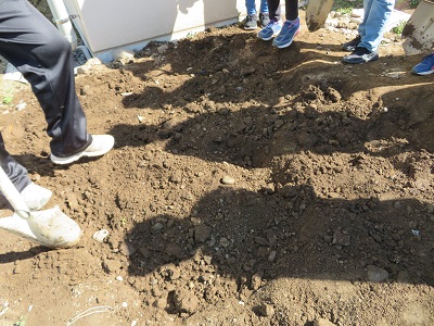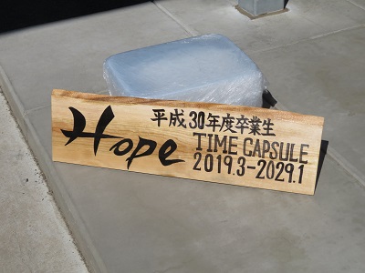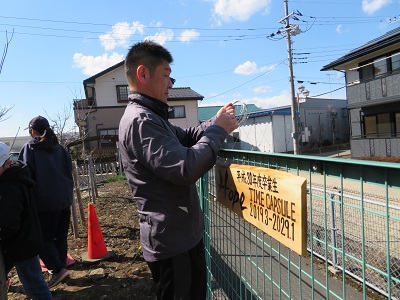 事前に穴を掘り、タイムカプセルを入れました。