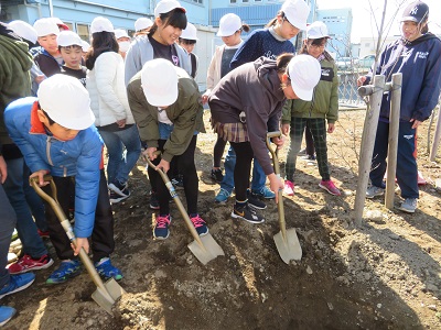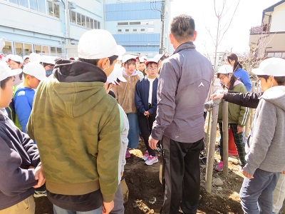 タイムカプセルの中には、10年後への自分への手紙と学年レクの賞状と1組は、今の自分の好きなもの、はまっていることをまとめたプリント、クラス新聞、クラスの名言集2組は、卒業カレンダー、クラス写真、10年後のアンケートの集計結果3組は、平成30年に作られたお金、自分の好きなものの写真か絵を入れました。一人1回ずつ、平らになるまで土か掛け、タイムカプセルを埋めました。看板を掲げ、「10年後にここで会おう。」と先生の話で終わりました。 10年後、22才になった子供たちと先生方、ここでどんな話をするのでしょうか。 その日を楽しみに・・・・。