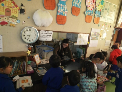 学校司書さんが来校しているときには、司書さんに相談しながらお目当ての本を探しています。