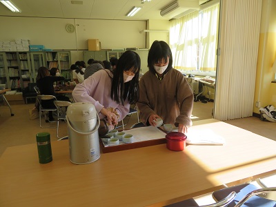 そして、5年生も、穴開けのお手伝いをしたり、お茶を入れたりしました。