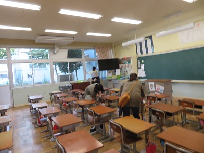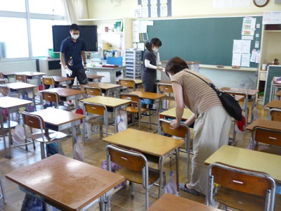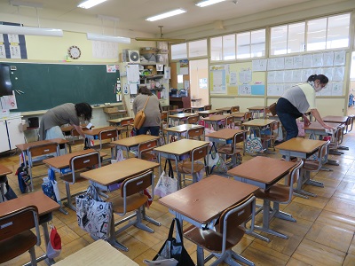 ボランティアの方に消毒していただいたお陰で、低学年の先生方は、クラブ活動で使用した教室や体育館の消毒に当たることができました。