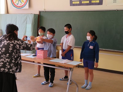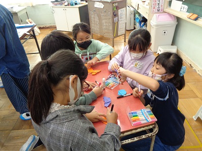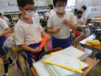 3年生が、ポスターにかわいい折り紙を貼って各クラスに配りました。