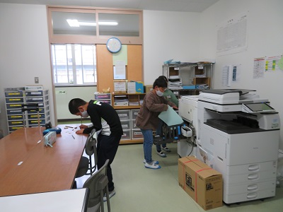 折り紙チームは、1400枚の折り紙を、一人2枚ずつになるように数え、封筒に入れクラスに配付しました。