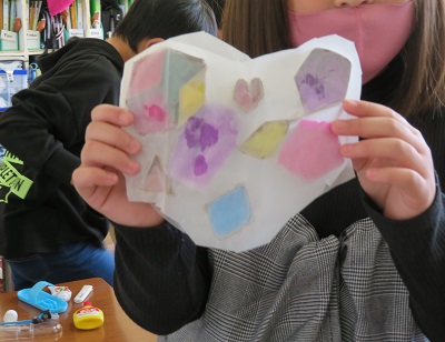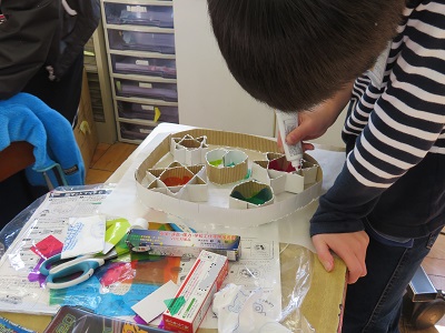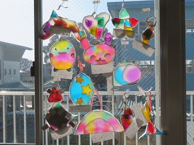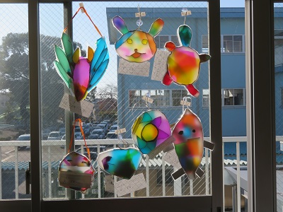 3年生が、カラーフィルムを使って、すてきな工作を完成させました。