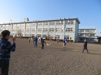 校庭を走り回り、楽しくたこ揚げをすることができました。