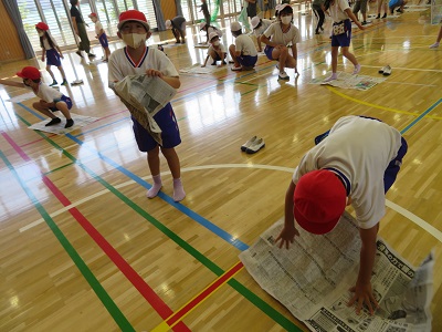 この日は、みんなで新聞紙じゃんけんをしました。
