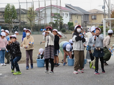 「とじこめた空気や水」の学習では、水を押し出した時の手応えを確認してます。