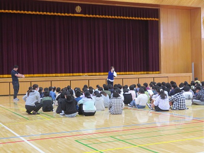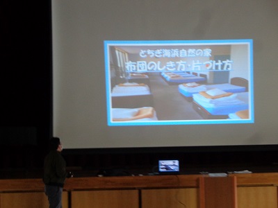 しおりを見ながら、宿泊学習での心構えやその日の流れ、活動内容の確認をしました。