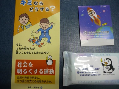 チラシとウエットティッシュと絆創膏です。