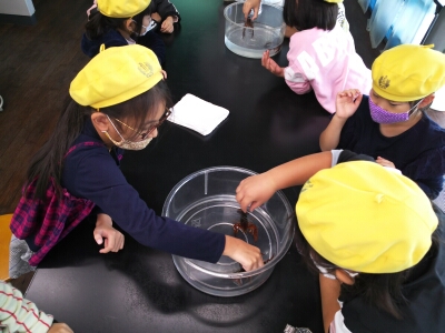 ザリガニ教室では、ザリガニについて勉強した後に、ザリガニを触る体験をしました。
