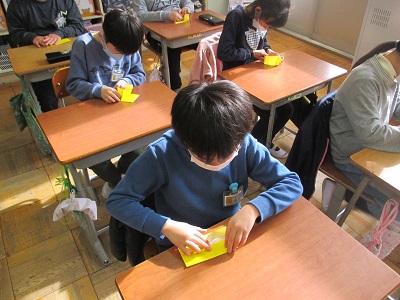 3年生は、折り紙でメダルを作りました。
