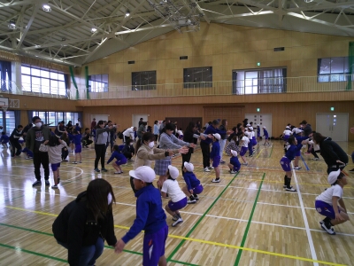 町生涯学習課・社会福祉協議会に協力していただき、親子レクリエーションを行いました。