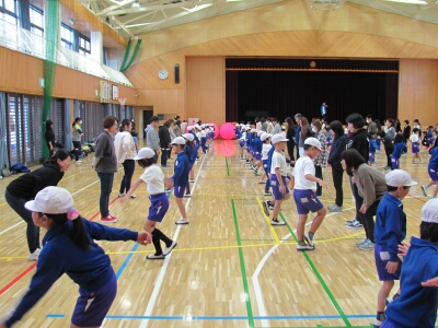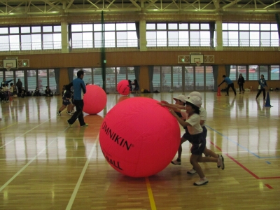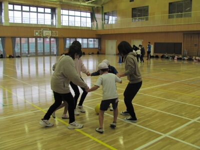 親子で交流しながら運動をしたり、フラフープやボールを使ったクラス対抗リレーをしたりしました。親子で楽しい一時を過ごすことができました。