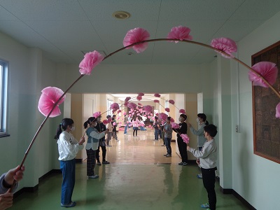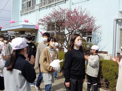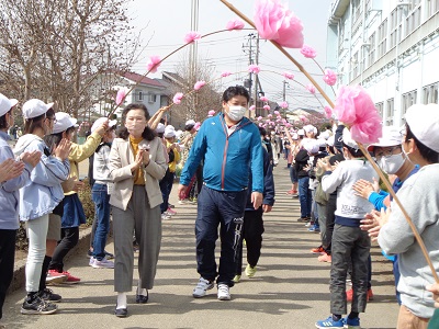 在校生は6年生が前を通った時に声を掛けたり、拍手をしたり、それぞれの感謝の気持ちを伝えていました。