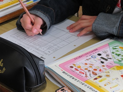 そして、教科書を見ながら五大栄養素に分け、気付いたことを発表しました。