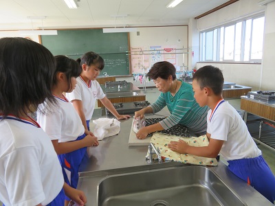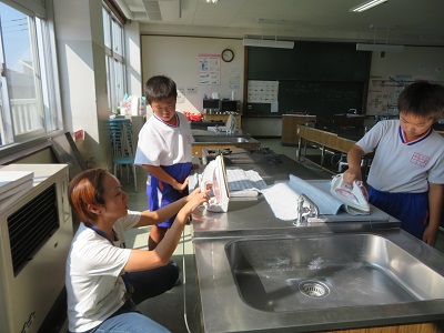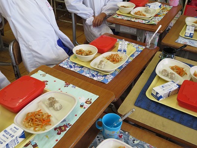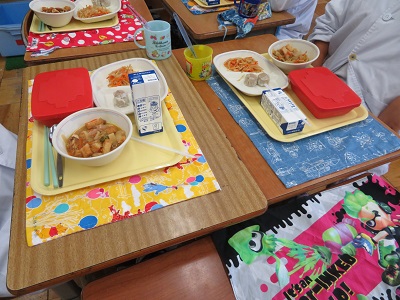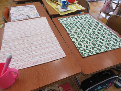 ランチマットが完成するとうれしくて、早速、給食の時間に使っている児童もいました。