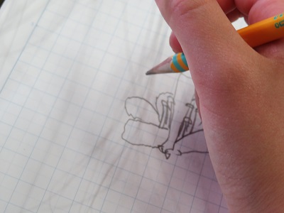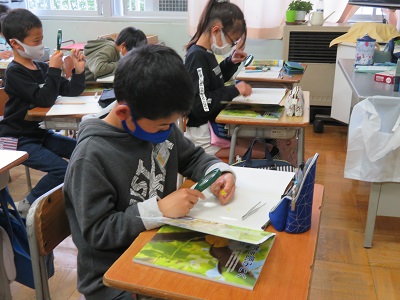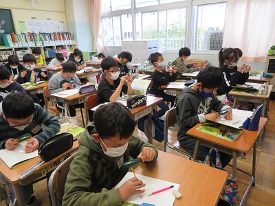 虫眼鏡で観察をして、おしべとめしべをしっかり描くことができました。