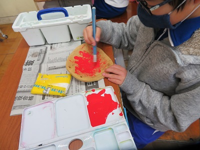 先週、ふくべの表面に絵の具がのるように、ヤスリで傷を付け、ふくべに描く絵のデザインを考えました。