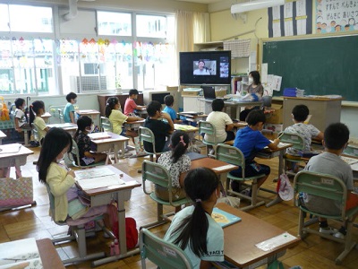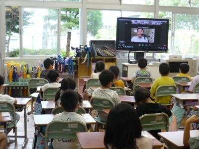今回は、放送室から児童指導主任がお話をし、各教室で映像を見ながらお話を聞く方法で集会を行いました。