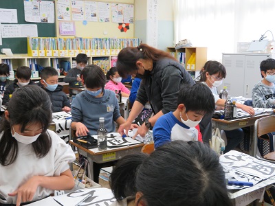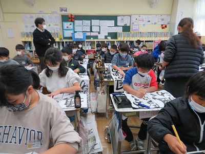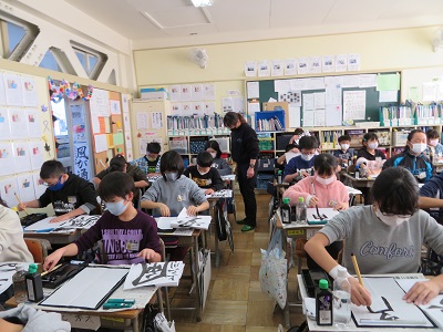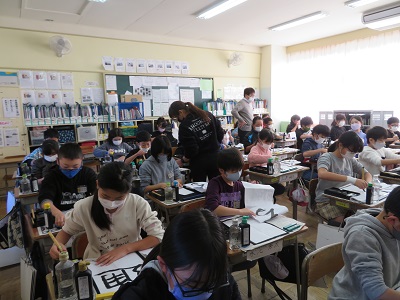 冬休み前に、書道ボランティアの先生が来てくれて、4年生以上の全てのクラスで指導をしていただきました。