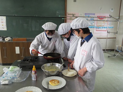 6年生、最後の調理実習は、ホットケーキかパフェかフルーツポンチから選んで作る、お楽しみ調理実習でした。