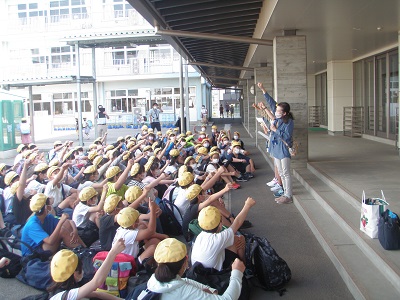 6年生が、体育館前に集合し、出発式をしました。