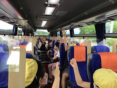 バスでは、朝の会をしてから、レク係が考えたクイズやゲームで楽しみました。