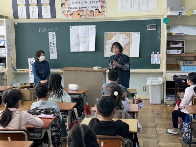 題名を書いてくれたり、地図や絵を用意して説明してくれたりと、2年生に分かりやすいように工夫してくださいました。