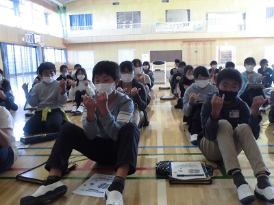 6年生の総合的な学習で、福祉についての出前授業がありました。