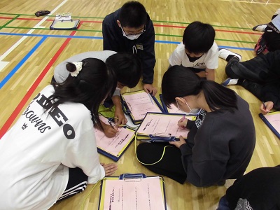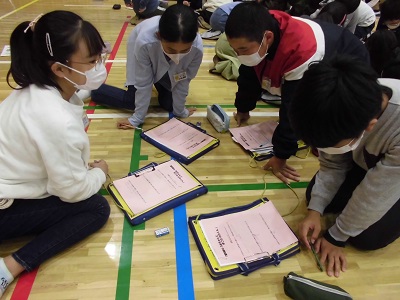 右手と左手で小指と親指をリズムよく変える運動に、苦戦している児童もいました。