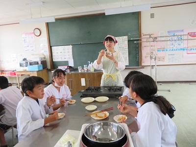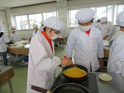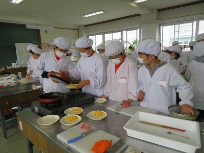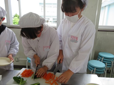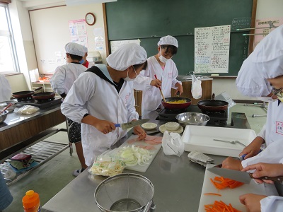 材料を切ったり、炒めたりする手つきは、5年生の頃に比べると、とても上達しました。