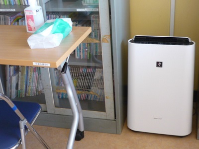 空気清浄機を保健室東側の部屋に置きました。