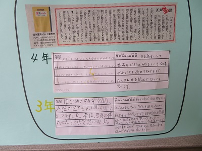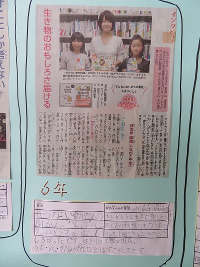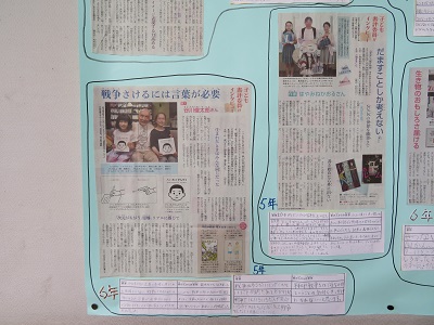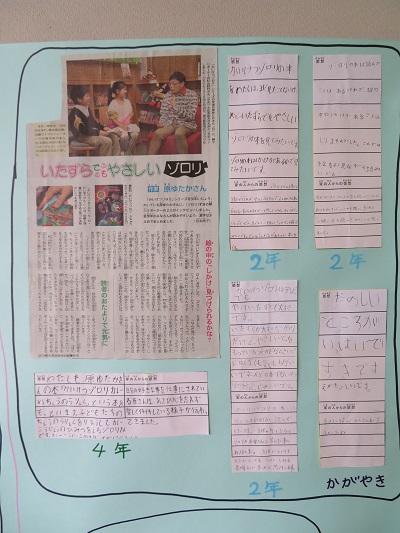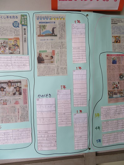 3年生以上は、小学生新聞1日分をプレゼントしてもらったので、その中から自分が興味をもった記事について読んで、感想を書いてきました。