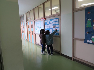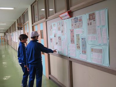 図書室の廊下に掲示すると、早速読んでいる児童がいました。