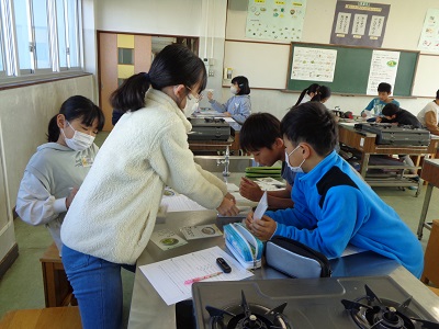 家庭科「献立を工夫して」の学習を学校栄養士の先生と一緒に行いました。