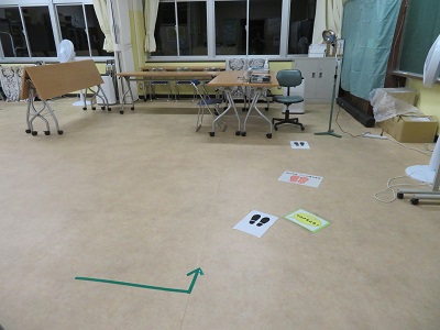 距離を取りながら待つように、床に印がしてあります。