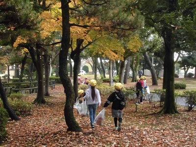 1年生が、生活科でおもちゃ作りをするために、富士山公園に木の実を拾いに行きました。