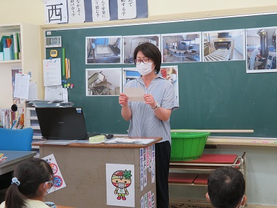 そこで、給食センターの方にお願いして、出前授業を実施していただきました。