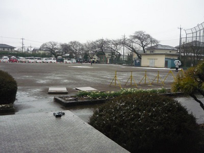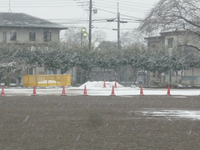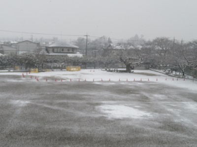 昼頃の校庭です。雪が降っているので、児童は外出ることはできません。