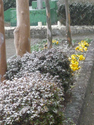 大人にとっては大変な雪も、子供にとっては胸が躍るようで、窓辺に行って中庭の様子を覗いている子供たちがたくさんいました。