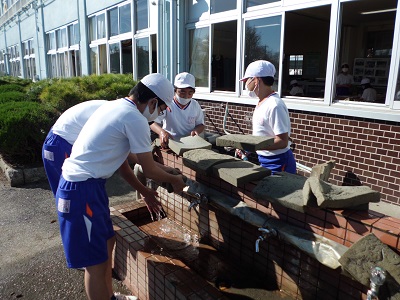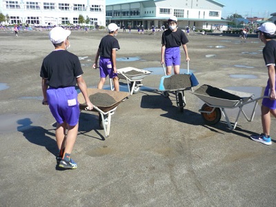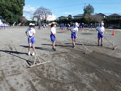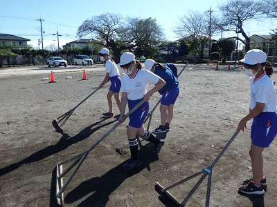 みんなで協力して行ったので、校庭がきれいに整地されました。